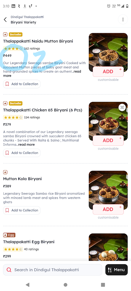 Dindigul Thalappakatti ensures every visit is memorable, with attentive staff adding to the warmth of your experience. Whether it's a lunch or dinner outing, this is the place to be for indulgent South Indian cuisine.